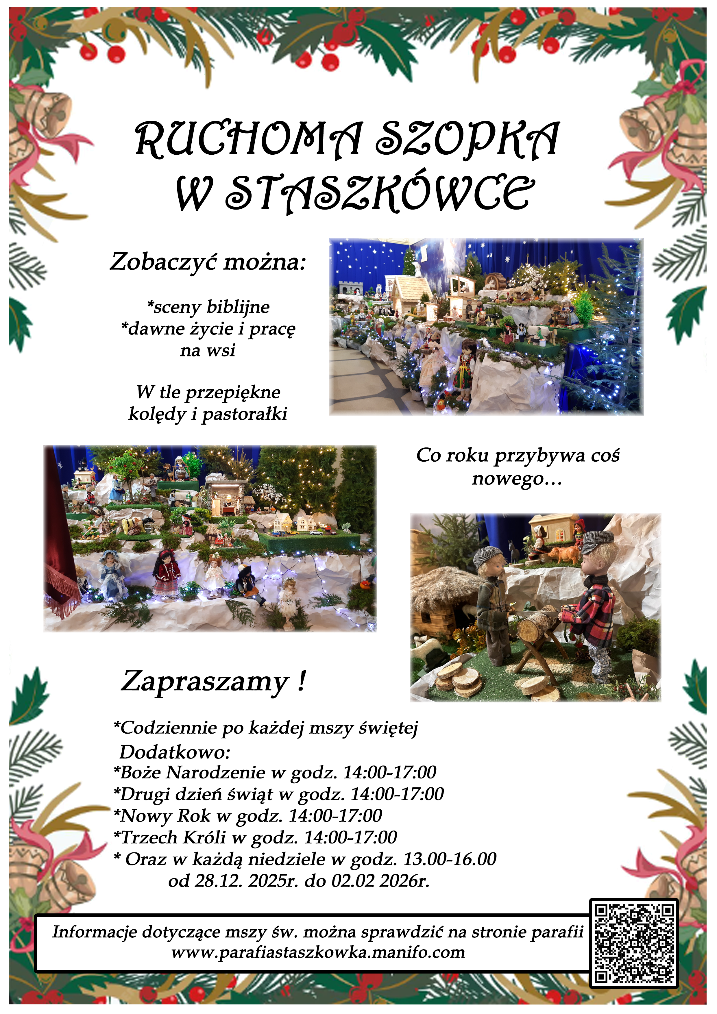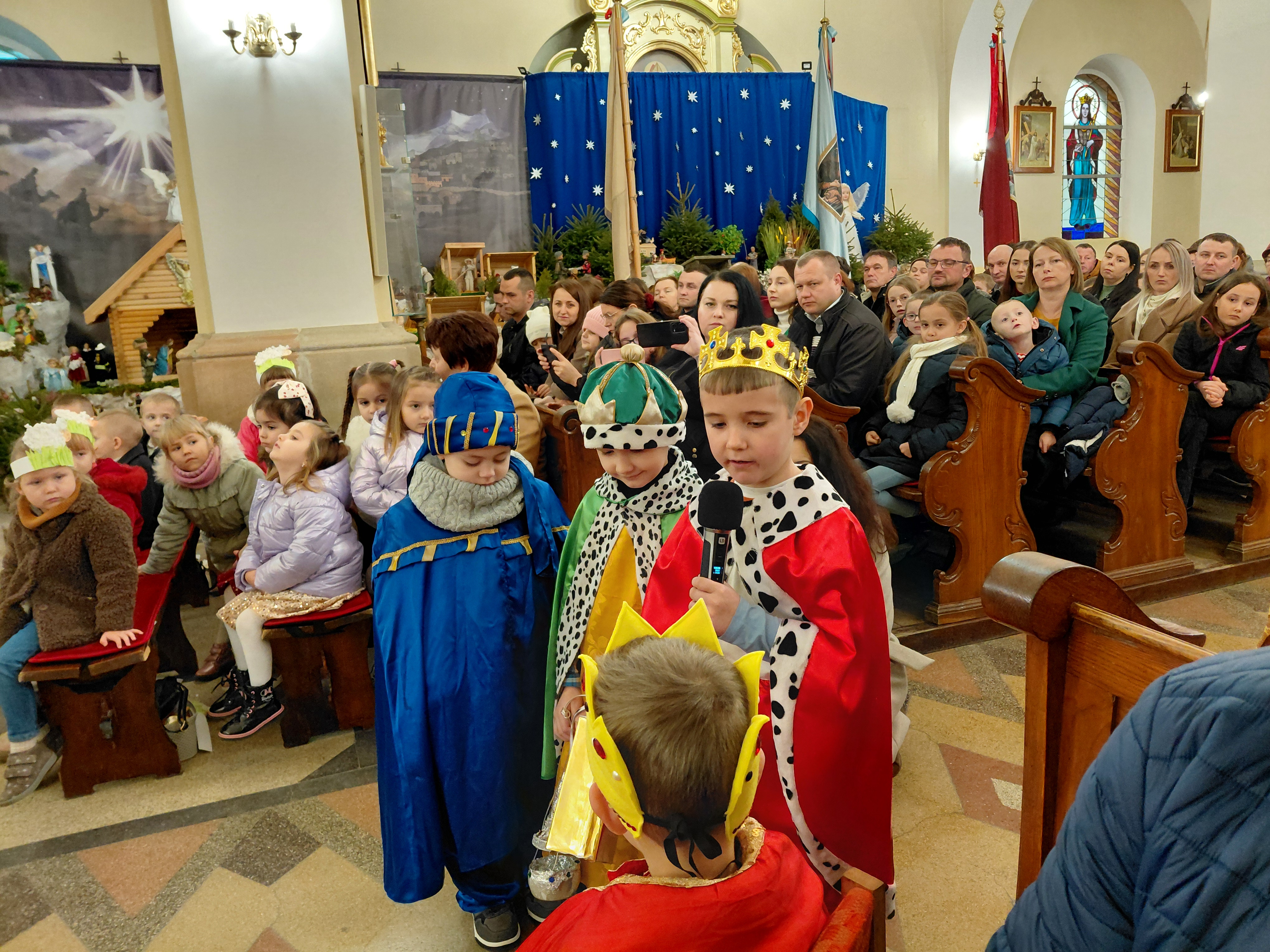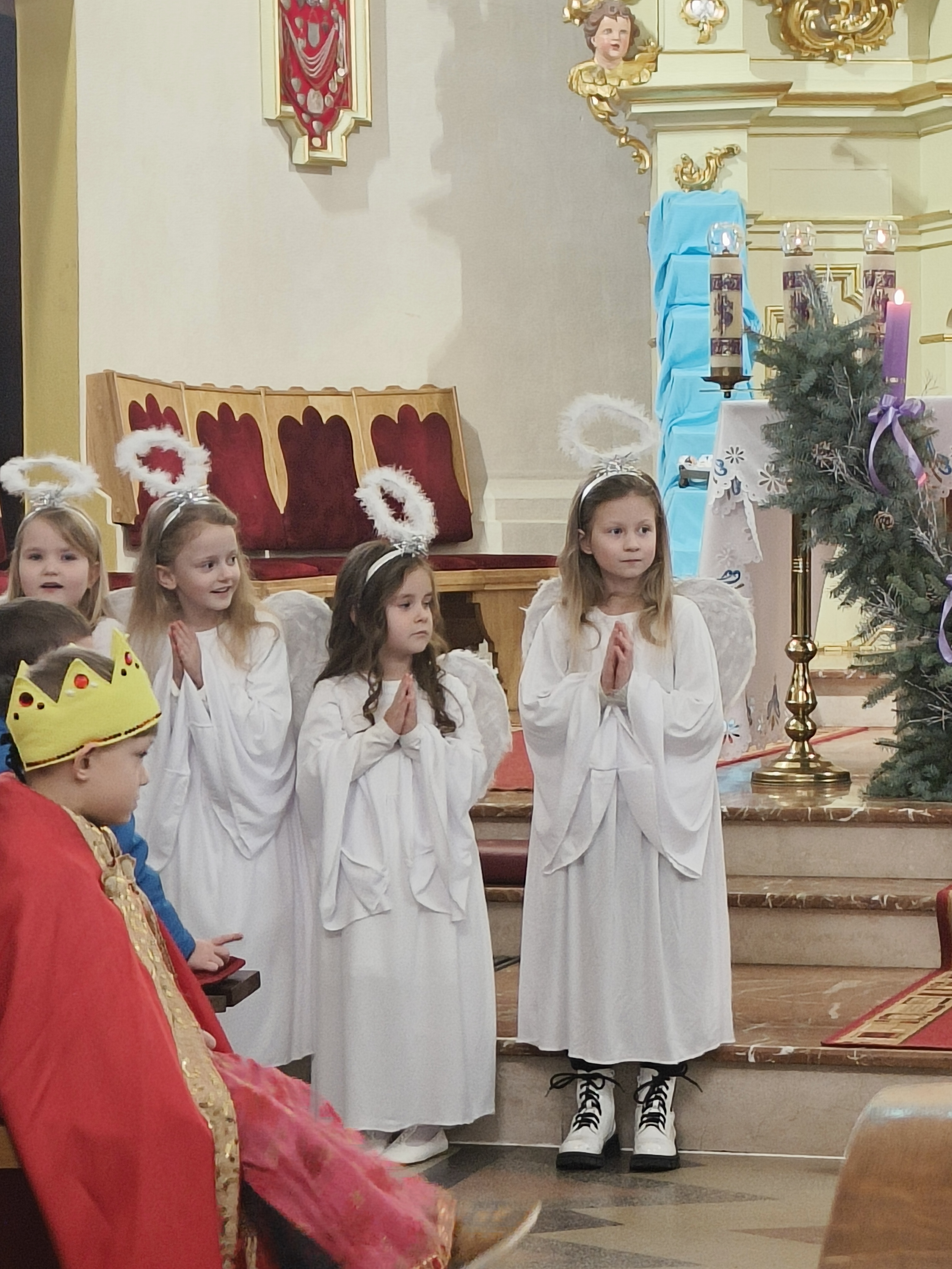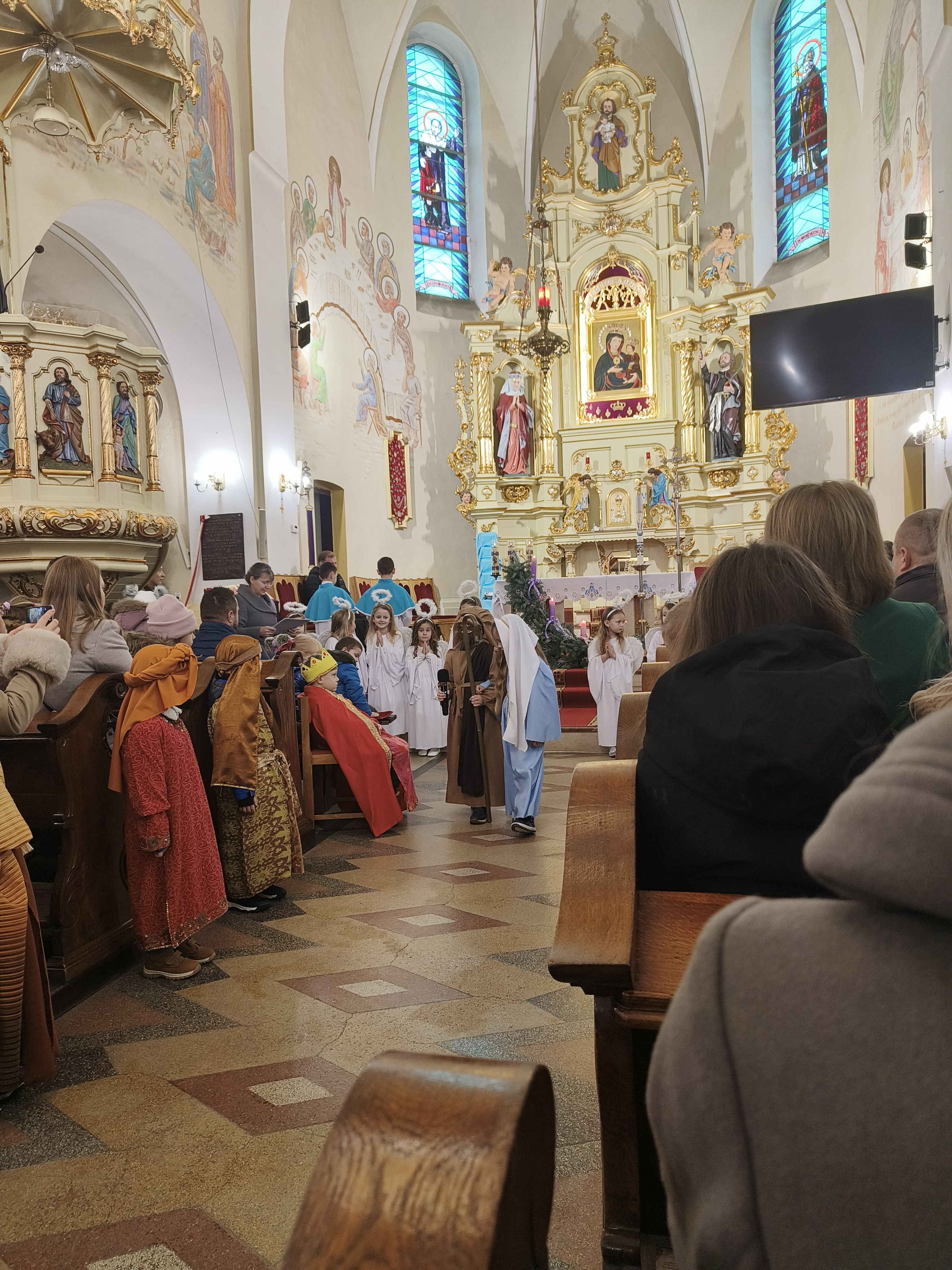 W ostatnią niedzielę Adwentu czyli 21 grudnia 2025r., dzieci z Przedszkola Samorządowego w Staszkówce, przedstawiły w kościele jasełka pt. "Pielgrzymi nadziei". Przed Mszą św. o godzinie 12.00 mali aktorzy, przebrani we właściwe dla swojej roli stroje, zgromadzili się przed ołtarzem, by jeszcze raz przypomnieć historię Bożego Narodzenia. Dzieci z odwagą recytowały swoje kwestie. "Baranki" tańczyły swój taniec a najmłodsze Biedronki przyniesły zrobione przed przedszkolaki ozdoby z masy solnej na parafialną choinkę.Całość zakończyła się wymowną pastorałką pt. "Czy jesteś gotów na przyjście Pana?"